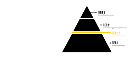Tier 1.5 supplements traditional three-tier definitions of MTSS by inserting additional support within core instruction. It differs from higher-intensity tiers (i.e., Tiers 2 and 3) by the number of students receiving support. Tier 2 is typically reserved for small groups of students who are nonresponsive to core instruction, and Tier 3 is reserved for individual students who receive personalized, intensive support. Although Tier 1.5 alters the traditional three-tier model of MTSS, the other recommended aspects of MTSS remain the same: All potential students within a school qualify, data-based decision-making is used to determine support, and educators receive professional development on how to implement evidence-based interventions.